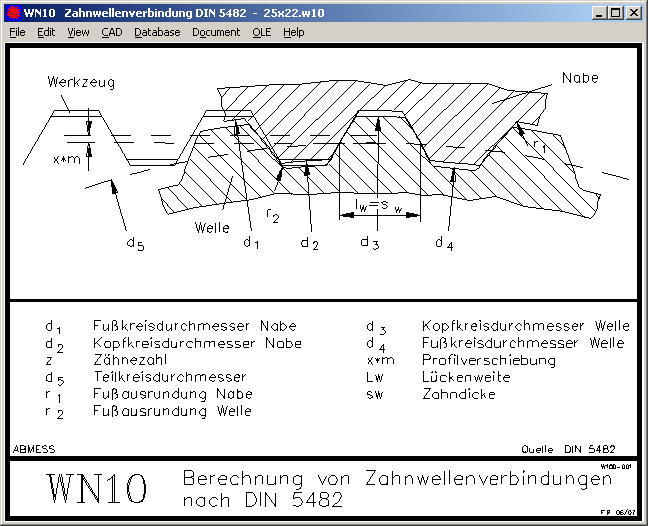 Einfacher geht es jedoch mit der neuen Software WN10, weil man Zahnhöhenfaktoren nicht erst berechnen muß, und die DIN-Größen einfach aus der integrierten Datenbank wählt.