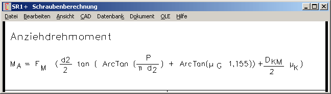 Zylinderkopfschrauben mit Innensechskant werden häufig versenkt. Für die Berechnung in SR1 muß die Senkung abgezogen werden, die einzugebende Länge des ersten Klemmstücks ist dann die tatsächliche Länge abzüglich der Höhe der Senkung.