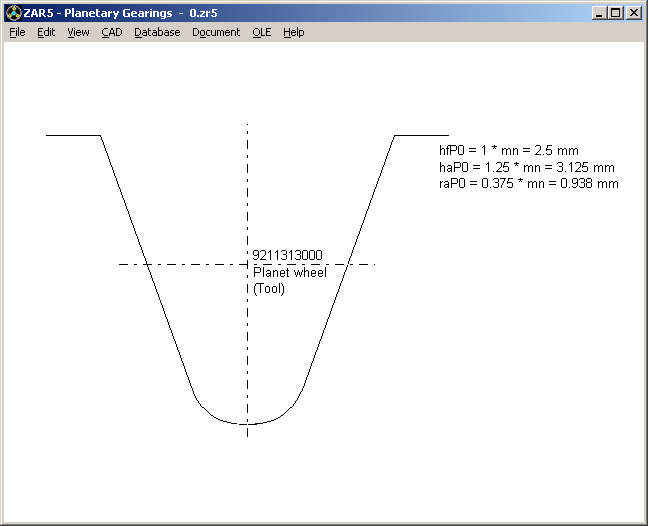 Drawing of reference profile for sun gear, planet wheel and ring gear can be displayed on screen or exported to CAD as DXF or IGES file.