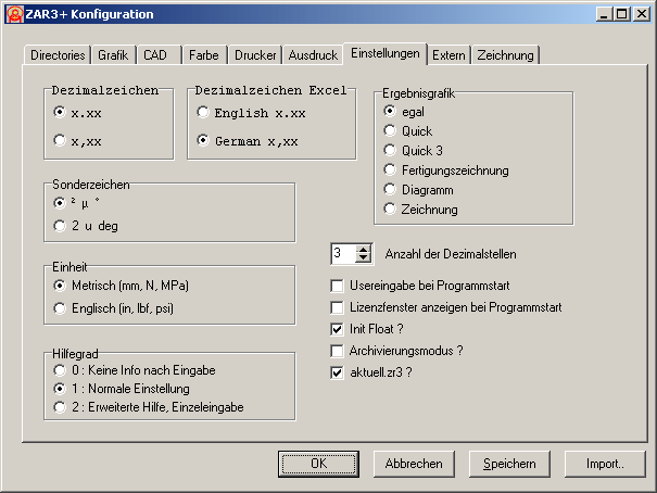 Beim Beenden des Programms wird automatisch eine AKTUELL-Datei mit den letzten Eingabedaten angelegt. So kann man beim nächsten Programmstart die letzte Berechnung öffnen. Wenn die automatische Erstellung einer AKTUELL-Datei nicht gewünscht ist (z.B. aus Datenschutzgründen), kann man jetzt unter Datei->Einstellungen->Einstellungen den Haken bei der aktuell-Datei entfernen und die neue Konfiguration speichern.