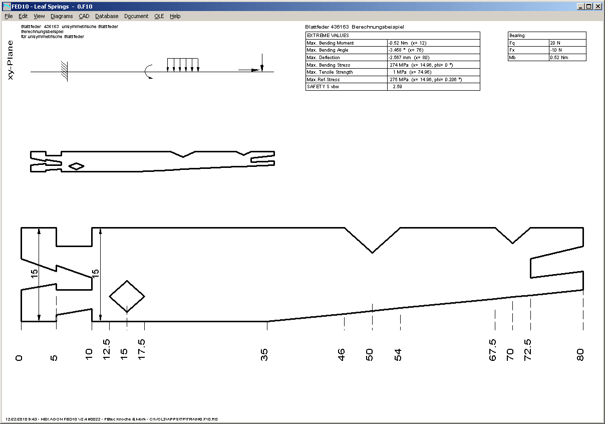 Drawing data and remarks have been added to Quick View and the diagrams with bending torque and bending line.