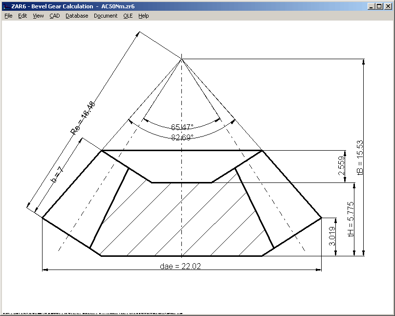 Gear drawings in ZAR6 were not exactly true-scale when imported into CAD. Picture has been corrected now, as well as the dimensioning positions of Re and tooth width b.