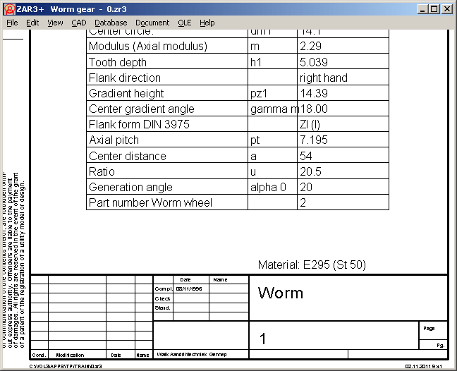 ZAR1+, 2, 3+, 5, 6: Material in Production Drawing