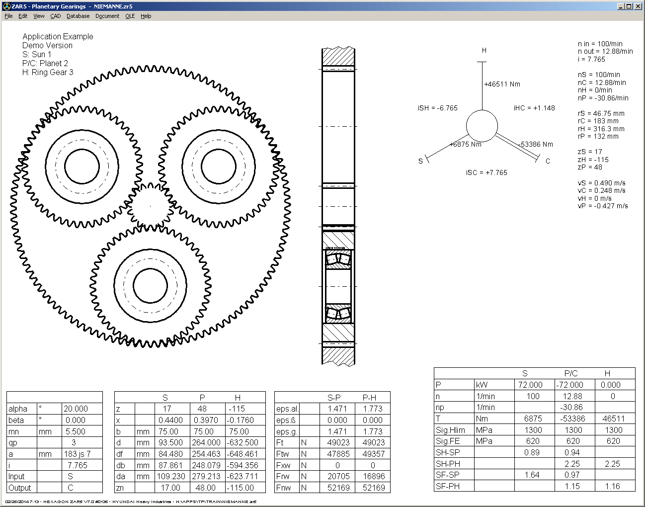 New Quick3 View provides a planet gear drawing in front view and profile, Wolf power distribution draft, and tables with dimensions and strength data of sun wheel (S), planet wheel (P) and hollow wheel (H).