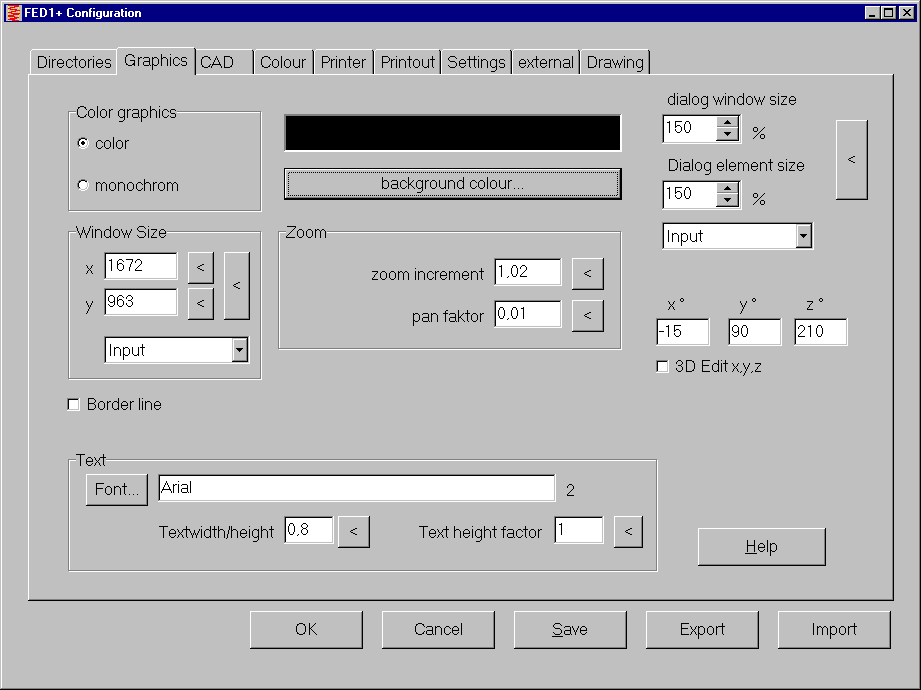 In FED1+, indices for drawings and diagrams used in command line mode are now equal with indices in Quick Input window, this begins with index 1 = "Quick 1" until Index 35 "stress Rm-d Quick". Index 25, 26, 27 for spring drawings (view, section, 3D centerline). Example command line: "wfed1 actual.fed /cad1:25"