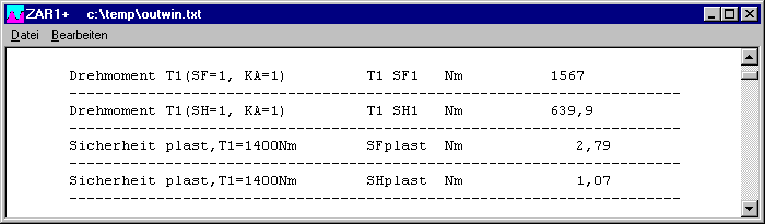Iterativ berechnet wird das Drehmoment für die Sicherheiten SF=1 und SH=1, außerdem die Statische Sicherheit SHplast und SFplast für das größte Drehmoment aus dem Lastkollektiv.