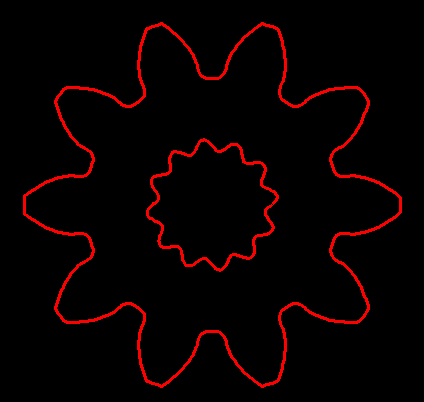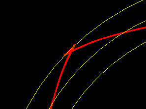Wenn man allerdings die Exzentrizität zu groß wählt, bekommt man den vom P4C-Profil bekannten Effekt, dass die Polygonkurve die harmonische Bahn verlässt. Dann muss man die Kurve wie beim P4C-Profil mit einem Kreisbogen begrenzen.