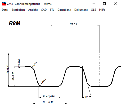 In ZM3 können Sie das Zahnprofil von Riemenscheiben mit Trapezprofil maßstäblich als DXF-Datei generieren. Oder gleich eine STL-Datei generieren und ein 3D-Modell der Riemenscheibe auf 3D-Drucker herstellen. Dafür können Sie die wichtigsten Parameter für das Zahnprofil verändern.