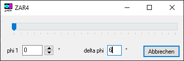 Mit den Pfeiltasten wird das Unrundgetriebe um den vorgegebenen Winkel weiterbewegt. Den Schrittwinkel delta phi kann man jetzt eingeben. Bisher war er festgelegt auf 180°/z1.