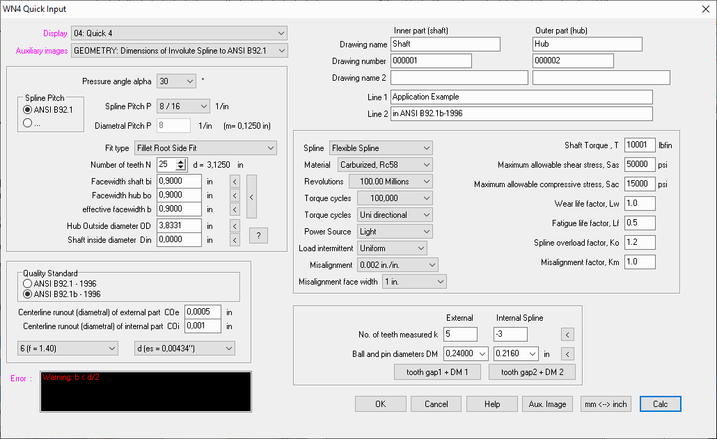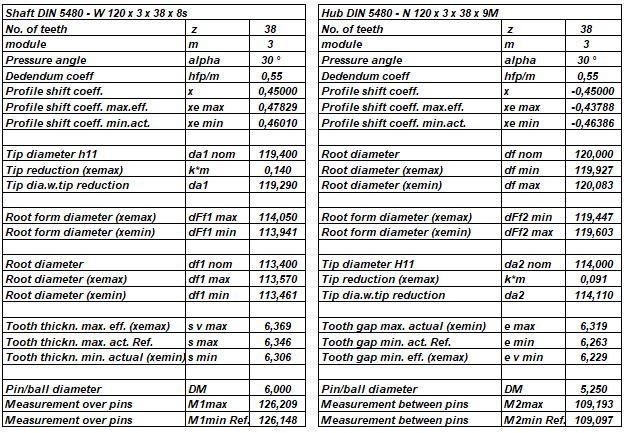 DIN 5481 for serrations covers the sizes 7x8 to 55x60. There are also 60x65 to 120x125 in the WN8 database. For these non-standardized sizes, fillet radii have been added in the database (RI_MAX and RE_MAX).