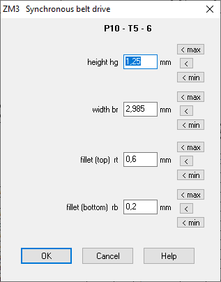 The dimensions hg, br, bh, rb, rt are now printed out with tolerances in quick views and printouts. Although the tolerances had already been calculated and taken into account when generating the profile (min/max), they were not displayed in the quick views until now.