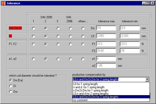 For use of standard wire size from database, you can choose between EN 10270-1 and DIN 2076 for cold-formed springs, and DIN 2077 for hot-formed springs.