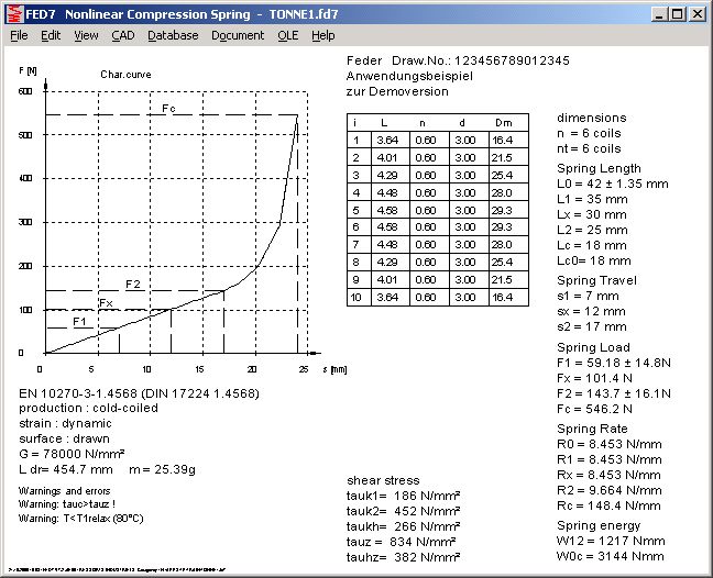 For more complex springs (> 20 segments), FED7 draws a spring shape drawing instead.