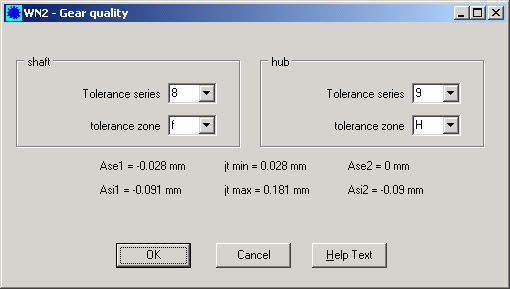 When selecting tolerance series and tolerance zone, the newest version of WN2 shows upper and lower tolerance as well as minimum and maximum torsional backlash (clearance). This helps to find an appropriate gear quality for your application, if you are not as much familiar with the tolerance classes and zones to DIN 5480.