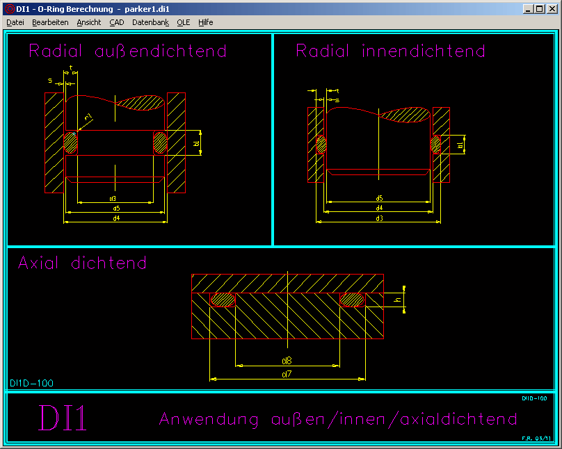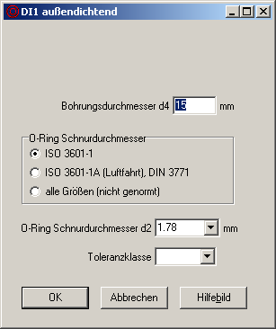 In der Auslegung legt man nur die wichtigsten Einbaumaße fest, DI1 sucht dann einen geeigneten O-Ring aus der Datenbank.