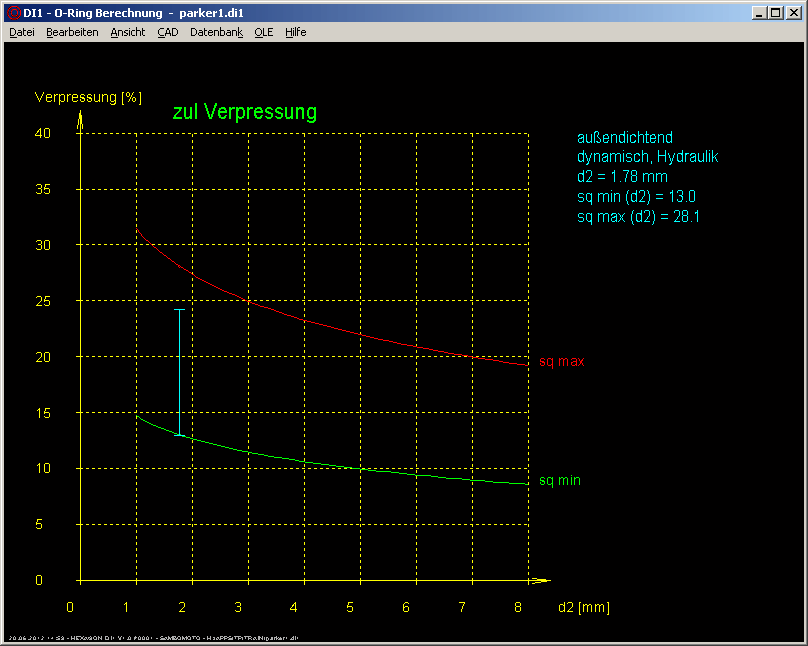 DI1 berechnet die Verpressung des O-Rings unter Berücksichtigung von Toleranzen, Querschnittsverringerung, konzentrischer und exzentrischer Lage (bei radialer Abdichtung).