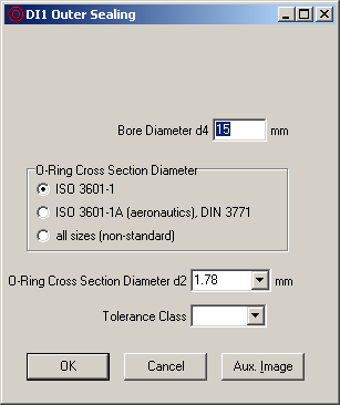 DI1 calculates O-Ring seals for radial outer sealings, inner sealings, and axial sealings.