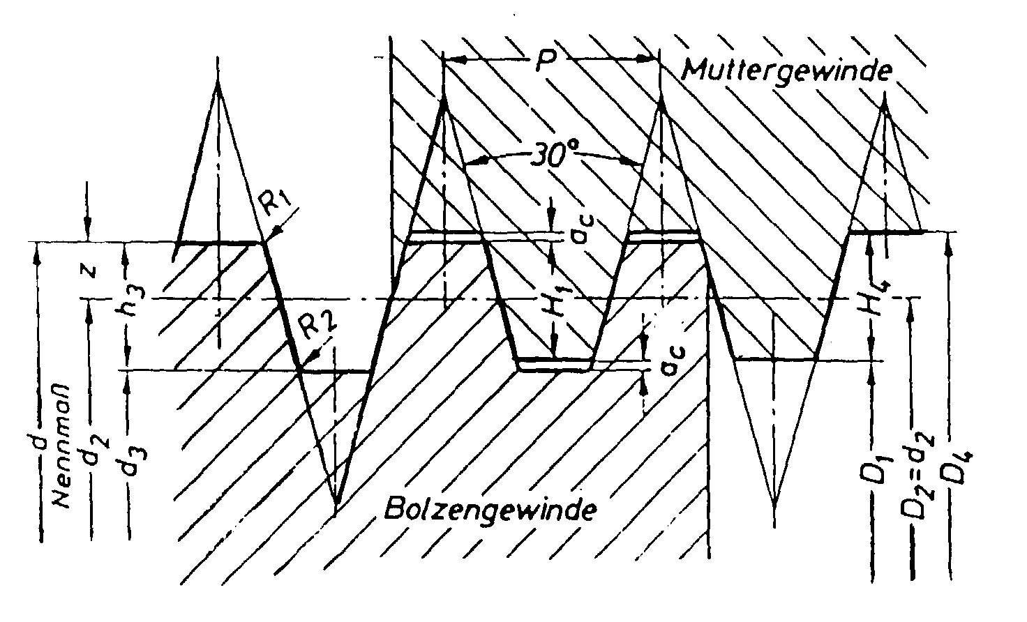 From DIN 513, part 1 (see Fig. 2) it follows that the thread depth of
