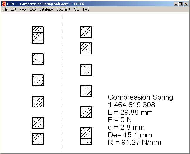 FED1+ contains a database with spring manufacturer catalogues, which you can append with your own springs. After a spring calculation you can search the database for appropriate compression springs when inputting minimum and maximum values.