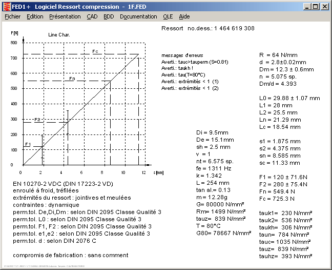 FED1+ calcule le prix du ressort définitif; les données de base sont considérées comme banque de données mais restent modifiables.