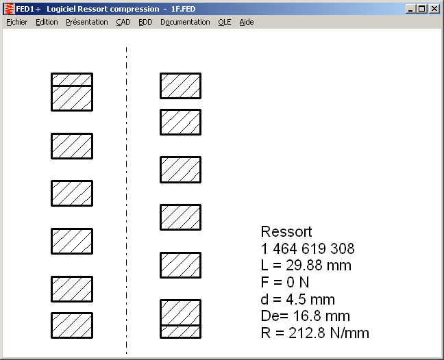 Des dessins de ressorts de longueur quelconque (entre L0 et Lc) peuvent être représentés graphiquement de face ou de profil, avec des extrémités fermées ou meulées et peuvent être pris en charge par les jonctions DXF ou IGES vers le CAD.