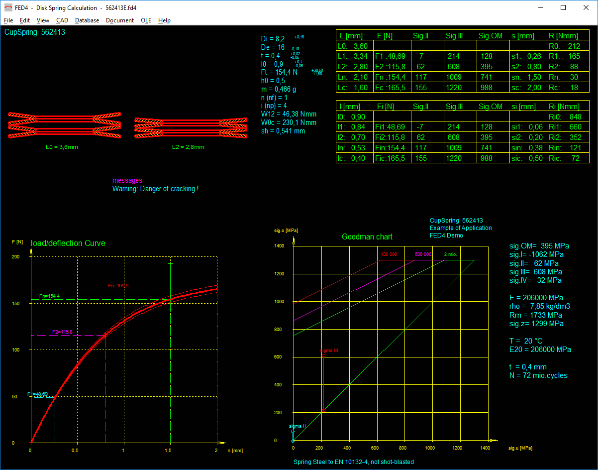 The FED4 software calculates cup springs and cup spring packages in accordance with DIN 2092. Two calculation methods are supported: