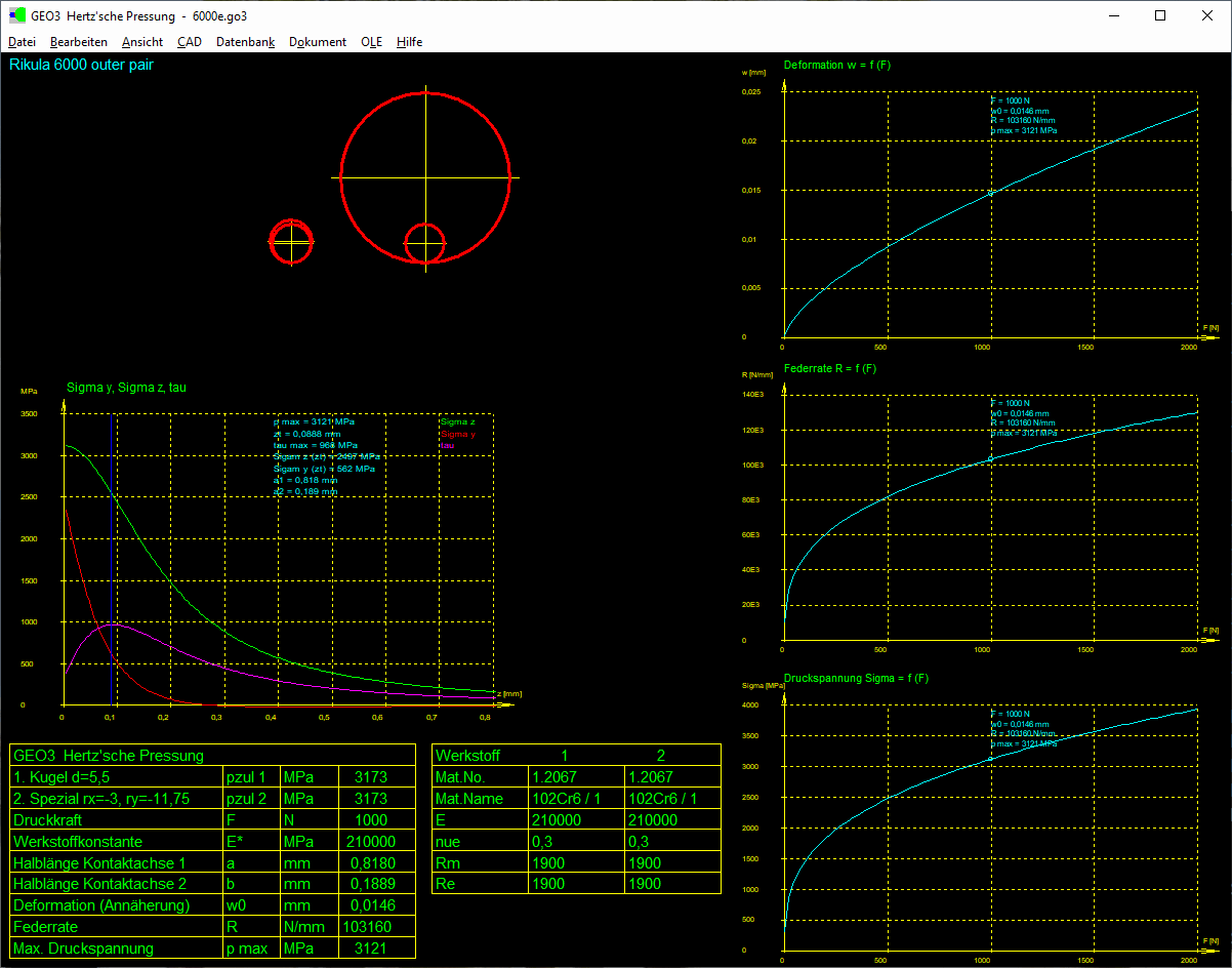 Demoversion der GEO3-Software zur Berechnung von Hertz'schen Pressungen
