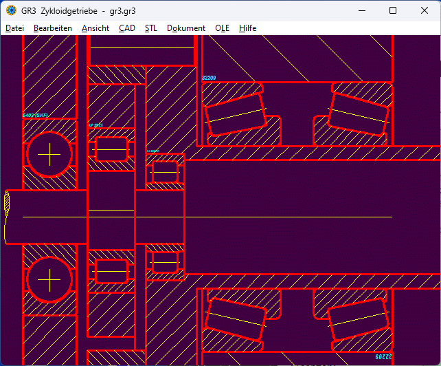 The drive shaft and output shaft are each supported by two bearings, with one side of the driving shaft being supported in the driven shaft. The fifth rolling bearing is used to support the planetary gear on the eccentric shaft. The GR3 software is supplied with databases of deep groove ball bearings, angular contact ball bearings, cylindrical roller bearings, tapered roller bearings, needle bearings, self-aligning ball bearings and spherical roller bearings.