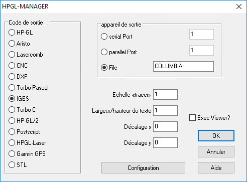 Vous pouvez convertir les fichiers HPGL ci-joints en formats DXF, IGES, Postscript, code NC, HP-GL et HP-GL/2. Si vous voulez tester votre fichiers HPGL, copiez notre logiciel HPGLVIEW, s.v.p.