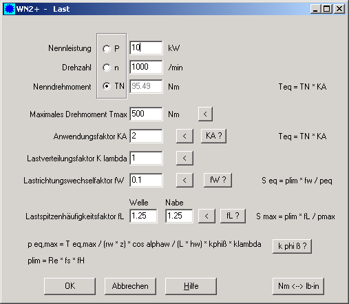 WN2, WN8 - Eingabe Drehmoment, Leistung, Drehzahl