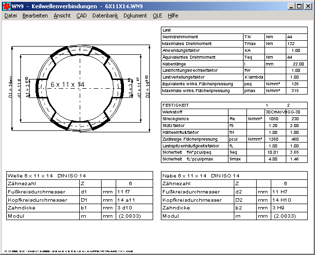 Die neue Software WN9 berechnet Keilwellen nach DIN ISO 14 und anderen Standards. WN9 ist demnächst lieferbar.