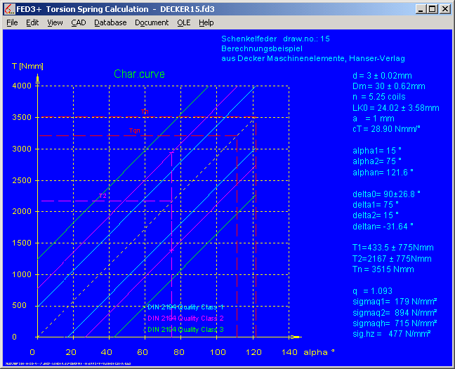 Characteristic line of spring can now be drawn with or without tolerance zones to grade 1, 2 and 3 according to DIN 2194.