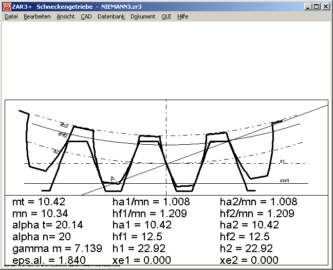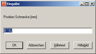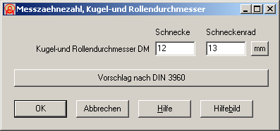 Für die grafische Darstellung des Zahneingriffs kann man jetzt die Position der Schnecke eingeben. Das Eingabefenster bleibt im Vordergrund, so daß man mehrere Eingriffspunkte durchprobieren kann.