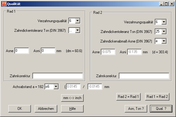 Bei 1-gängigen Schnecken (z1 = 1) war ein falsches Rollenmaß ohne Toleranzen (Größtmaß = Kleinstmaß) berechnet worden. Der Fehler wurde korrigiert.