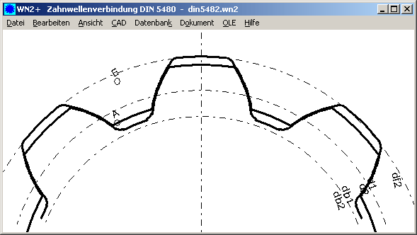 Zahnprofile nach DIN 5482 kann man mit WN2+ berechnen, allerdings ohne die Fase im Nabenprofil. Wenn das DIN 5482-Profil in CAD zur Herstellung von Form- oder Räumwerkzeugen verwendet werden soll, muß die Fase im Nabenprofil manuell ergänzt werden.