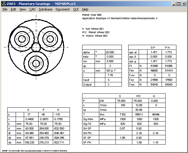A true-scale draft of the planet gear has been added to the ZAR5 Quick View. Therefore, the long descriptions of the table data had to be removed.