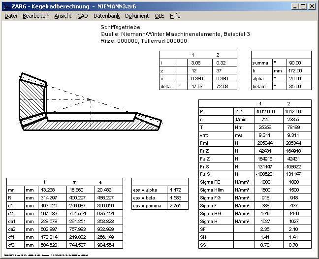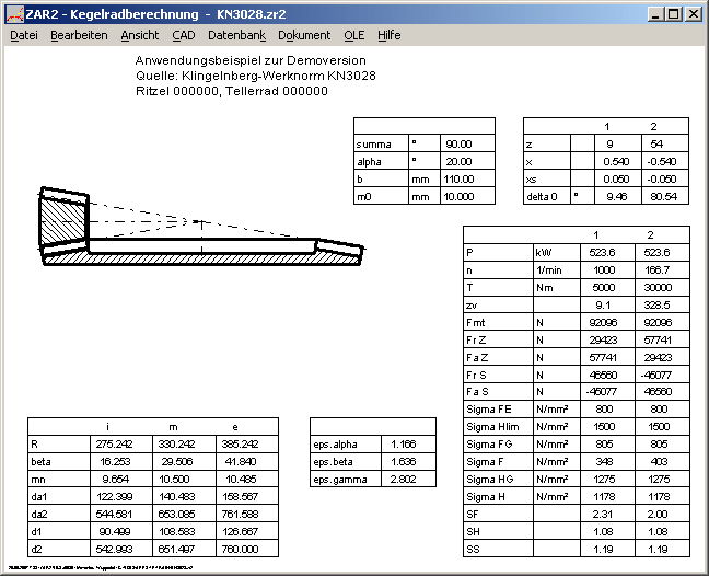 Die Tabellen mit den wichtigsten Berechnungsdaten in der Quick-Ansicht wurden um eine Zeichnung des Kegelradgetriebes ergänzt.