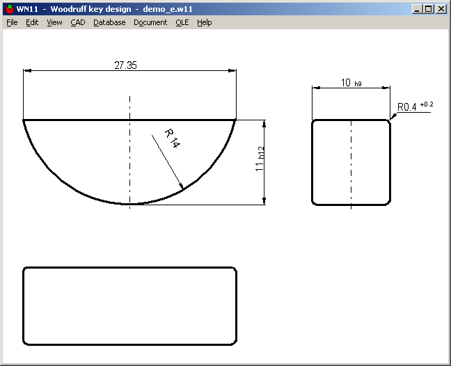 WN11 includes a database with dimensions of Woodruff keys according to DIN 6888. Database may be extended and modified by the user.