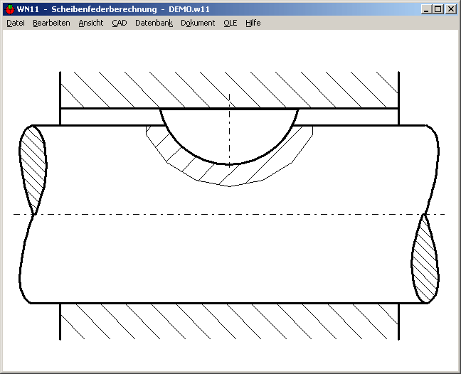 Die WN11-Software berechnet die Tragfähigkeit einer Scheibenfederverbindung nach DIN 6892. Diese Norm für Paßfedern ist auch für Scheibenfedern verwendbar, wenn statt tragender Länge und tragender Höhe mit den tragenden Flächen von Wellennut, Nabennut und Scheibenfeder gerechnet wird.