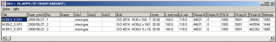 Die Voransicht-Tabelle ("Datei-Öffnen Tabelle" ) wurde um Kräfte und Sicherheiten erweitert auf nunmehr 30 Spalten. Die Voransicht eignet sich gut für Variantenrechnungen. Dazu einfach einen neuen Ordner anlegen und die Varianten abspeichern.