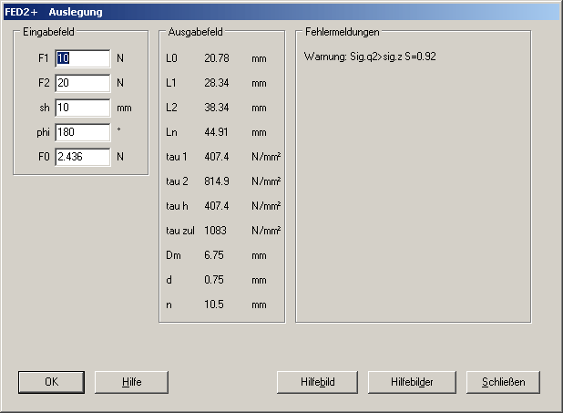 In der Voransicht-Tabelle mit Federdaten wurde die Masse m ergänzt. So kann man in Variantenberechnungen die effektivste und kostengünstigste Feder ermitteln.