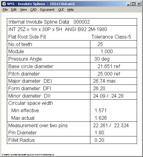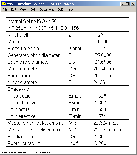 Updated version of WN5 lets you select calculation according to ANSI B92.2M or ISO 4156. Default setting is now ISO 4156. Depending on your selection, WN5 draws at "View->Quick" and "View->Table" a data table according to ANSI B92.2M or ISO 4156.