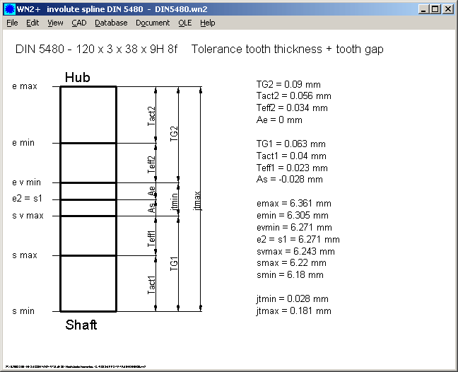 A new tolerance graphic in WN5 shows the relation between tolerances and measurement dimensions on tooth thickness and tooth gap to ISO 4156 / ANSI B92.2M.