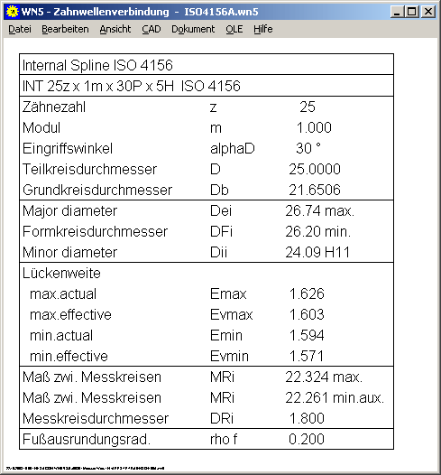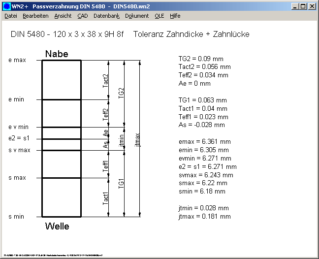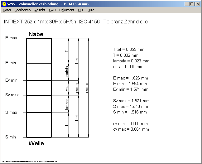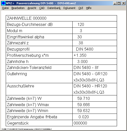 Im Ausdruck von WN2 werden nur noch von der Außenverzahnung die Zahndicken angegeben, und von der Innenverzahnung die Lückenweiten.