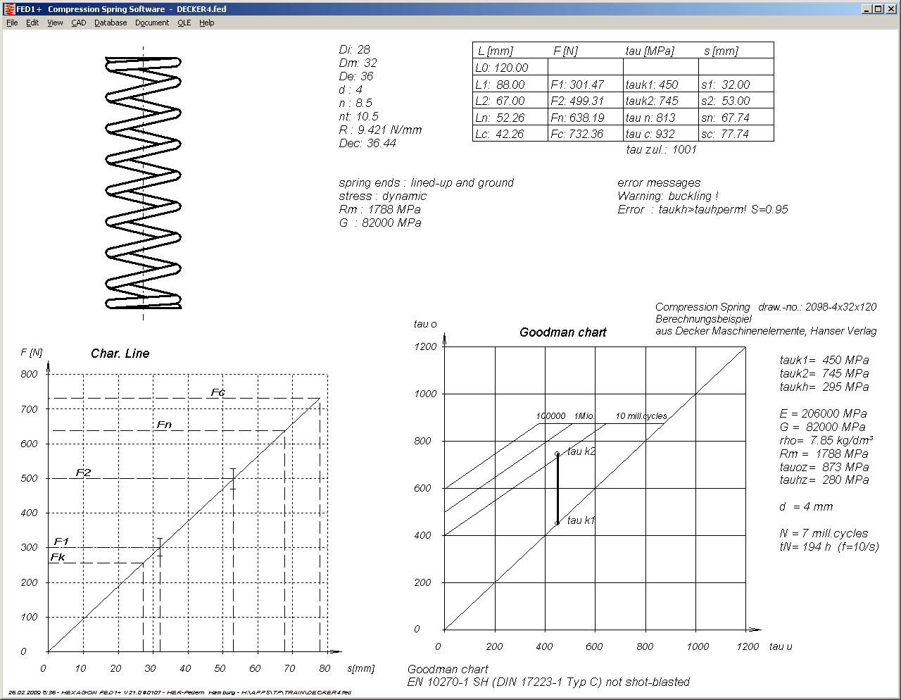 Spring drawing, load-extension diagram, Goodman diagram and calculation results are displayed in one screen now.