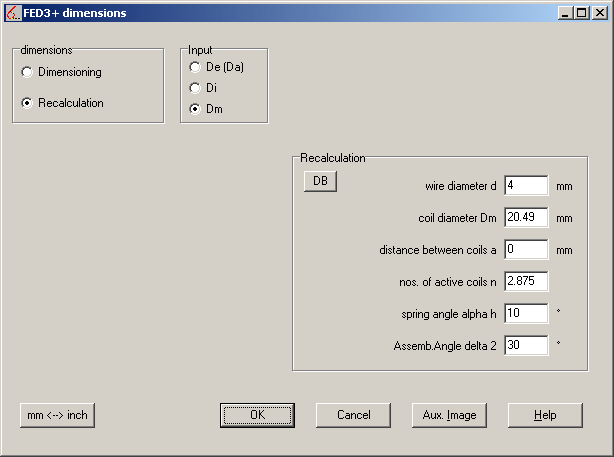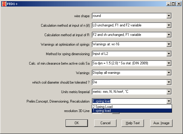 If you wanted to calculate a spring with one load and one spring travel, you had to set F1=0, s1=0 and L1=L0 until now. In the new version, you can configure this case at Edit->Calculation Method. Input windows show only one load and one spring travel or assembly length in this case.