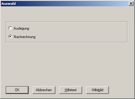 Nachdem ein anderer Werkstoff gewählt wurde, kann man entweder die Federmomente neu berechnen und die Federabmessungen unverändert lassen (Nachrechnung), oder die Federmomente bleiben gleich und die Federabmessungen werden entsprechend angepaßt (Auslegung).