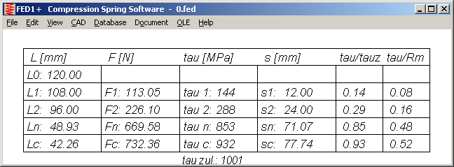 Similar than for spring loads F1 and F2, you now can also suppress usable spring length Ln und corresponding load Fn in the production drawing.