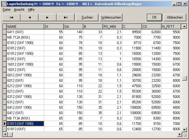 Die mit LG1, WL1+ und ZAR5 gelieferten Wälzlagerdatenbanken wurden überarbeitet: Bei Rillenkugellagern haben sich Tragzahlen und Grenzdrehzahlen geändert, bei Pendelkugellagern, Zylinderrollenlagern und Kegelrollenlagern gab es Ergänzungen. Bei allen Datenbanken wurde die Ermüdungsgrenzbelastung Cu für die Berechnung der erweiterten nominellen Lebensdauer nach DIN ISO 281 ergänzt. Weil dadurch die Datenbank um ein Feld erweitert werden musste, sind die alten dbf-Dateien mit den neuen Programmversionen nicht mehr verwendbar.