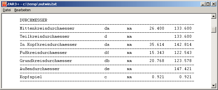 ZAR3+ Quick-Ansicht: Grundkreisdurchmesser db mit ausgegeben